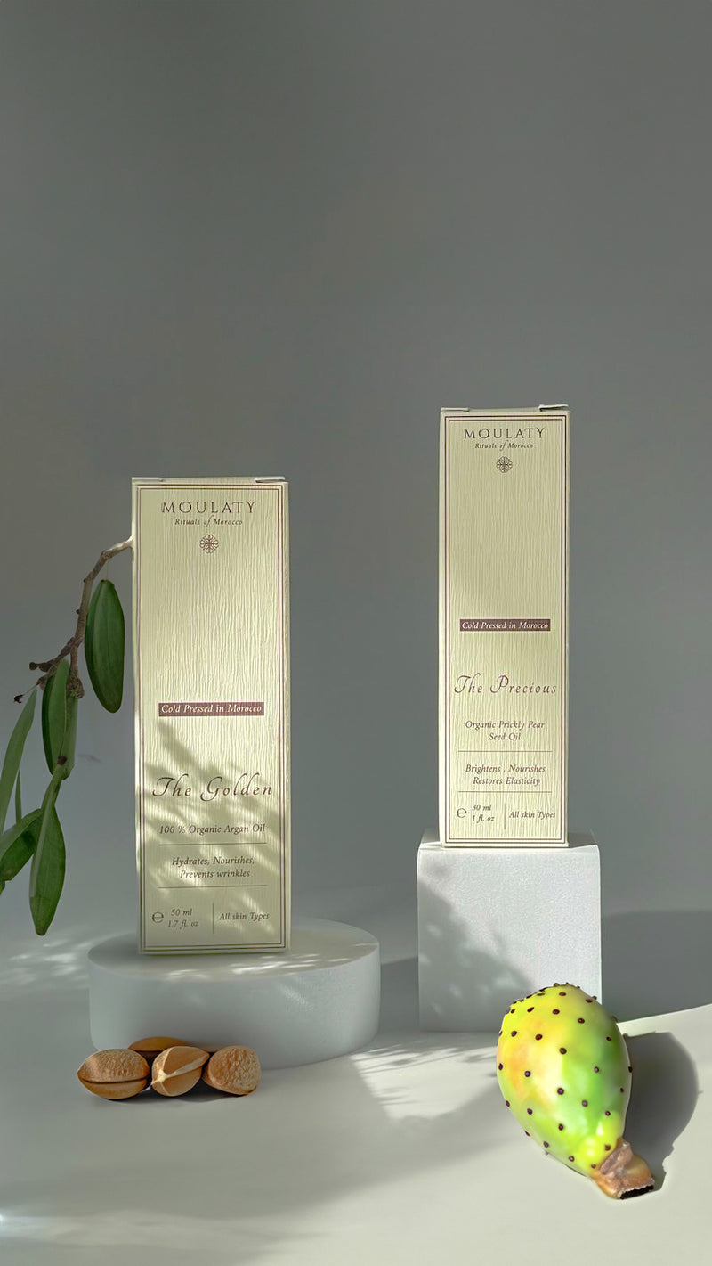 Experience the synergy of our Organic Argan Oil and Prickly Pear Seed Oil for ultimate skin and hair nourishment.