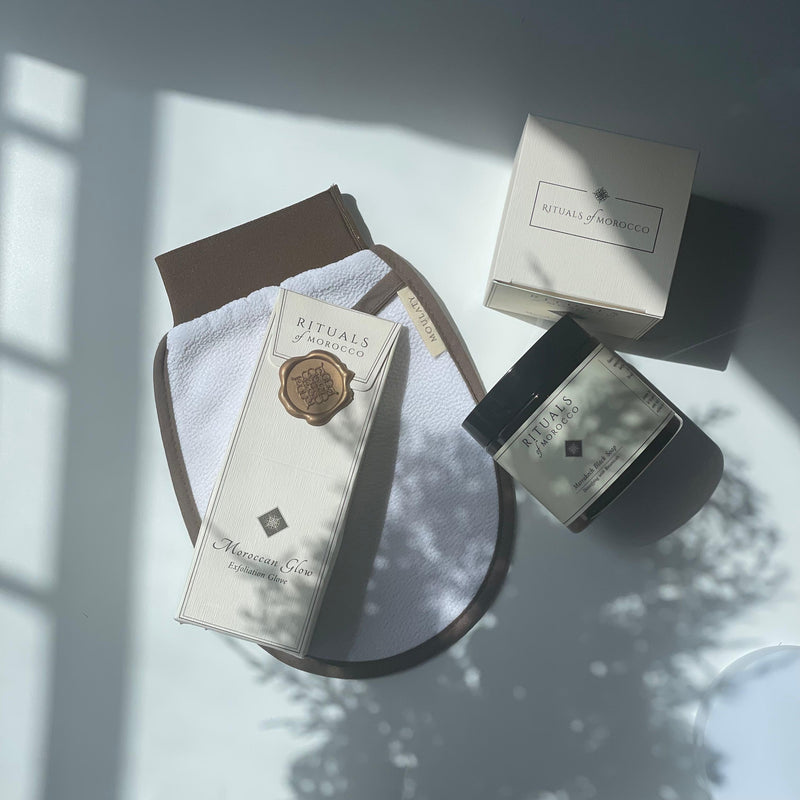Rinse and scrub with the glove to remove dead skin. - Ghassoul – Detox: Apply the clay mask to face & body. Leave for 10 minutes, rinse off.